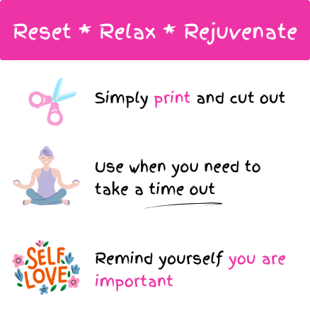 There are 40 printable self-care cards you can cut out and laminate, or print on board.